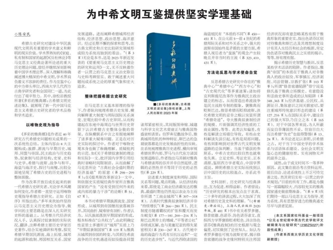 中希文明互鉴中心希腊史研究代表性成果之三 专著《多彩的雅典娜:古希腊文明史论述集》